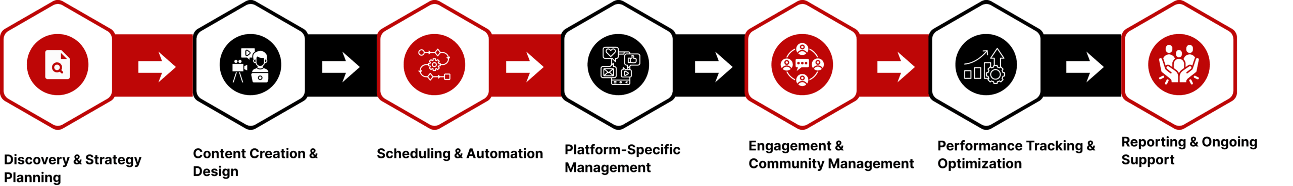 We provide complete social media management services that covers planning, execution, and optimization, allowing businesses to maintain a consistent, professional presence without managing daily tasks internally.